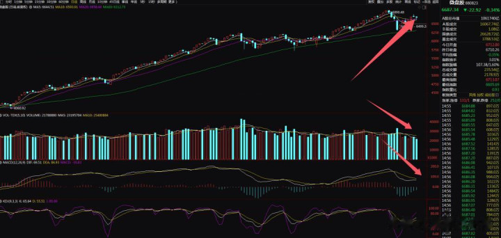 2、两市成交额1.59万亿,较上一个交易日缩量2805亿!缩量下跌+放量上涨+缩量下跌:目前市场量能状态还是不错,我们能看到他是处在一个前面缩量下跌+后来温和放量上涨+周二缩量下跌这个模式,整体上是符合放量上涨+缩量下跌,整体上多头有力,有利于多方,多方掌控的局面。